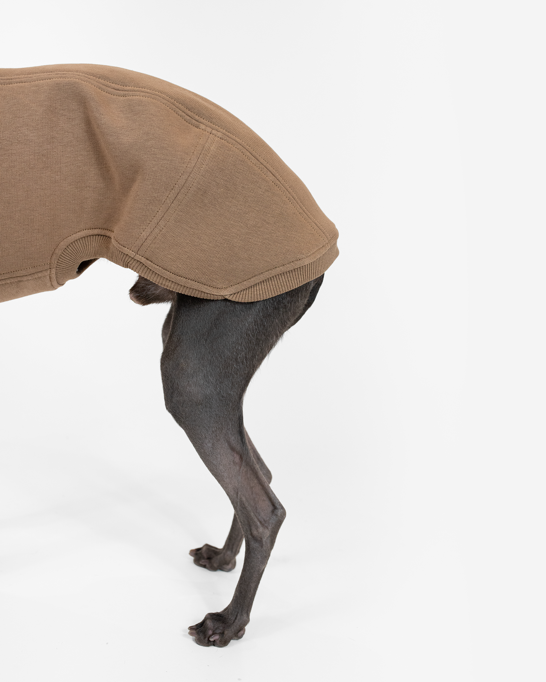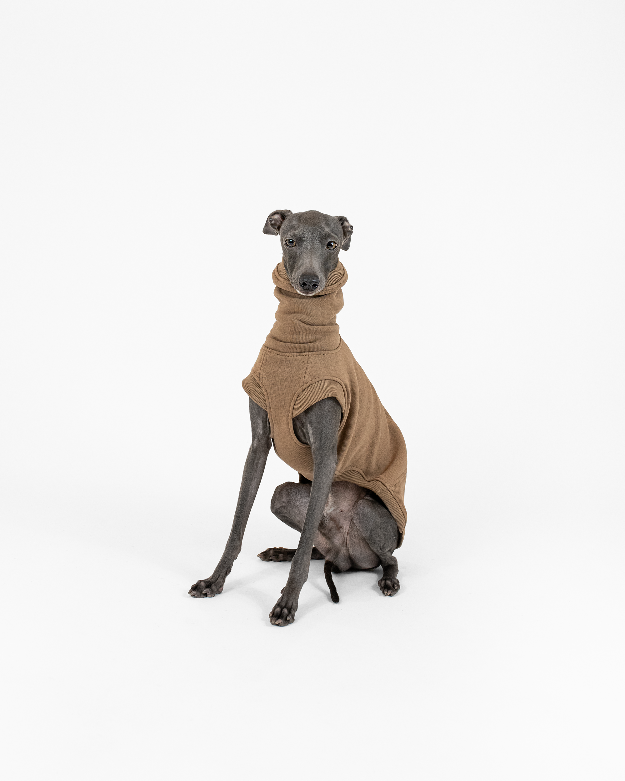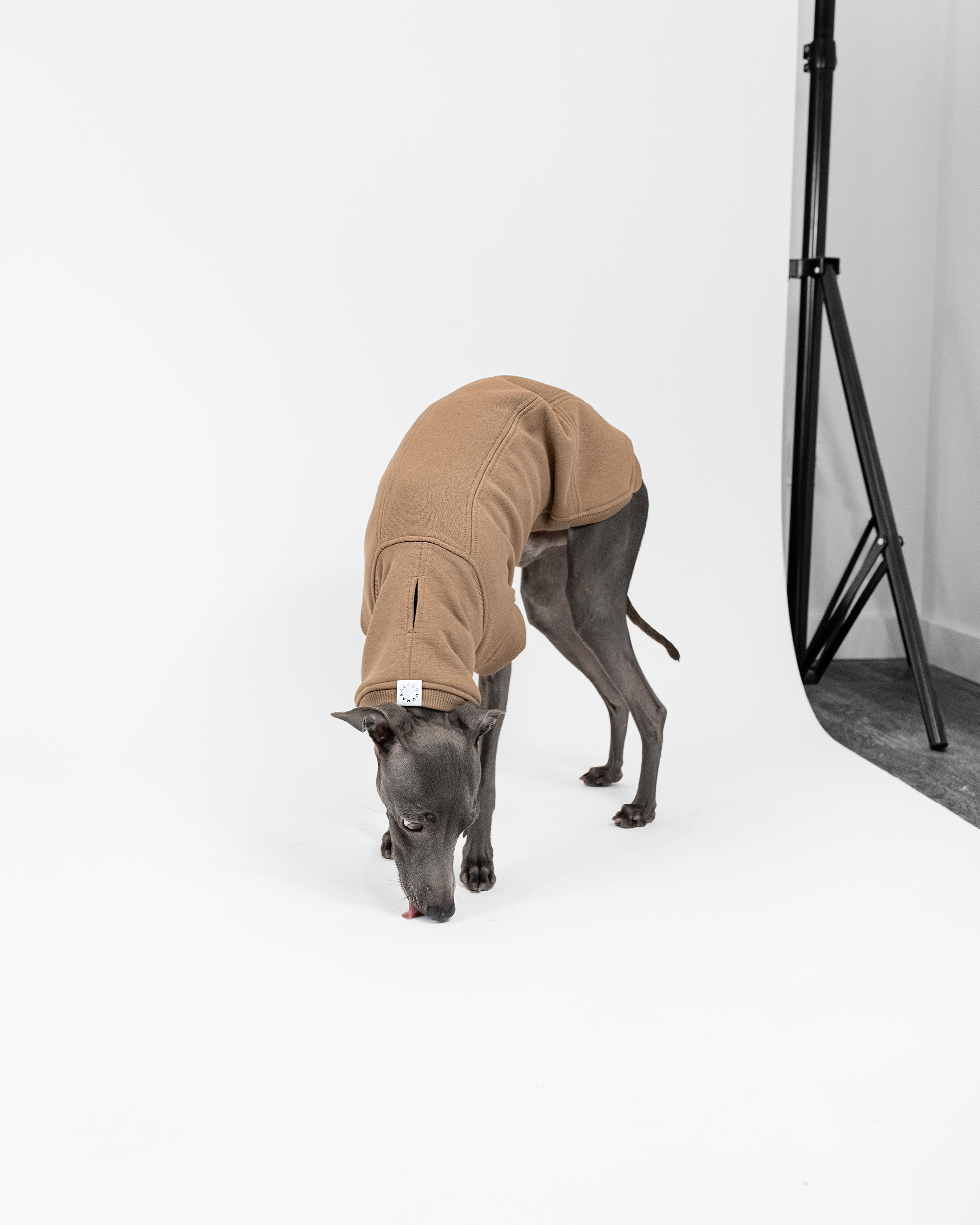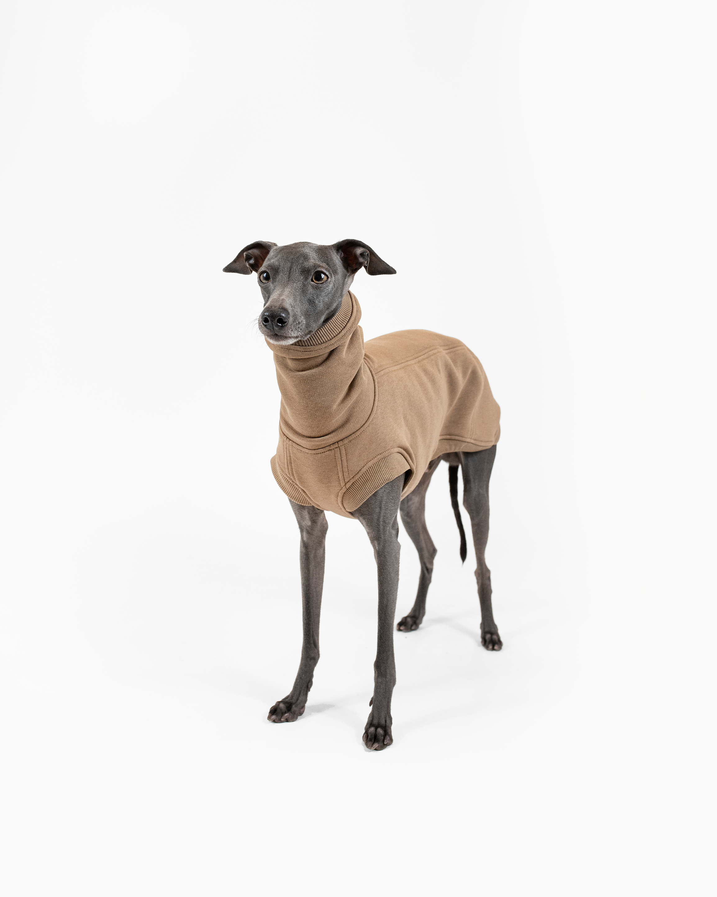 Handmade & high-quality Cafe au Lait Cozy Waistcoat is tailored without sleeves and mainly designed for Italian Greyhounds and Whippets. Its curves and lines perfectly meet the needs of our beloved fast runners. The fabric is thick and has warm fluff on the inner side. This feature keeps Your dog warm during chilly weather, whether its windy, cloudy or both.
