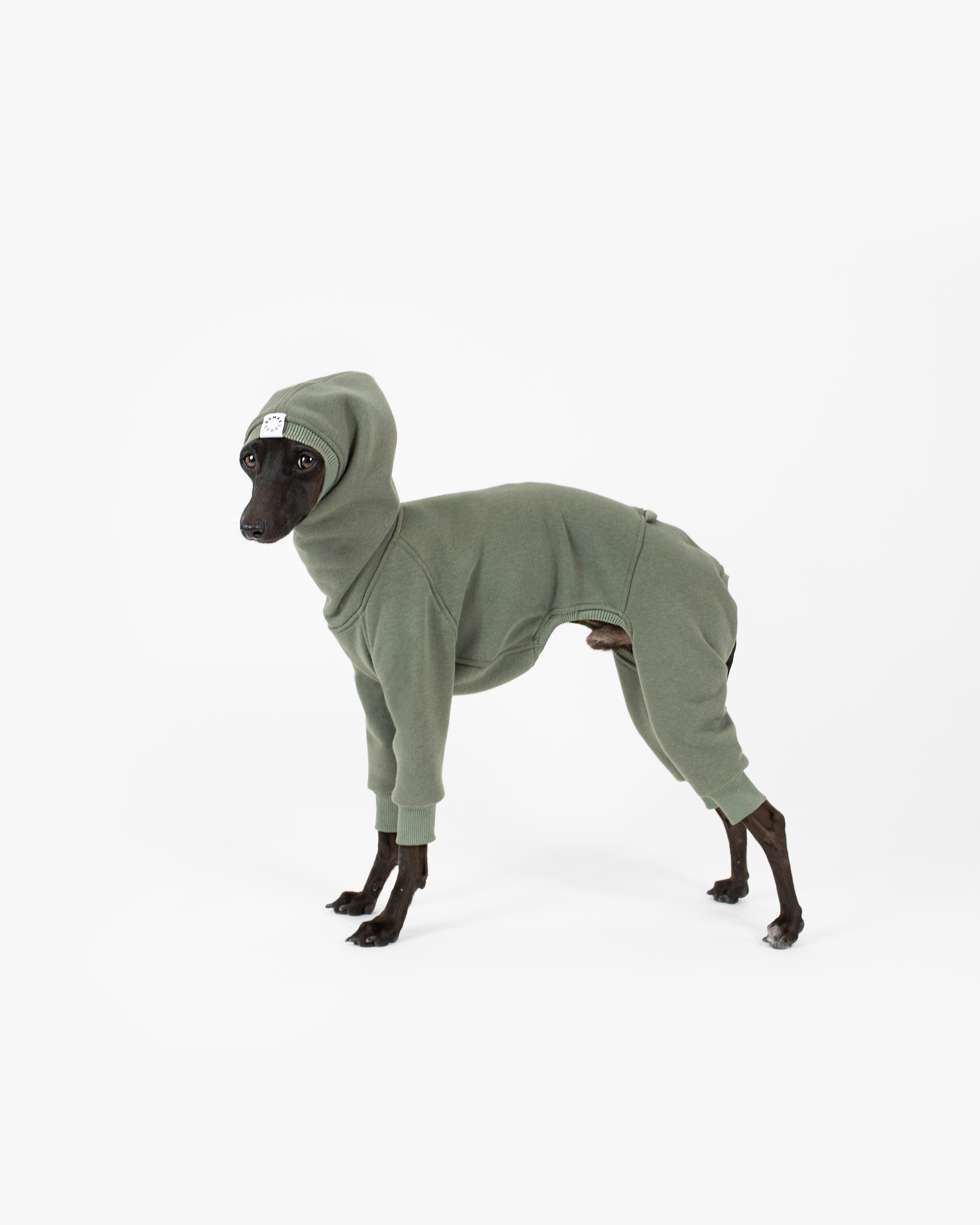 Handmade & high-quality Army Green Shark Jumpsuit is covering all body and mainly designed for Italian Greyhounds and Whippets. Its curves and lines perfectly meet the needs of our beloved fast runners. The fabric is thick and has warm fluff on the inner side. This feature keeps Your dog warm during chilly weather, whether its windy, cloudy or both. Moreover, this Cozy Onesie has cute Shark shaped hood! What a good way to maintain the heat on windy days. But You can stay on the regular path and pick standard turtleneck instead.