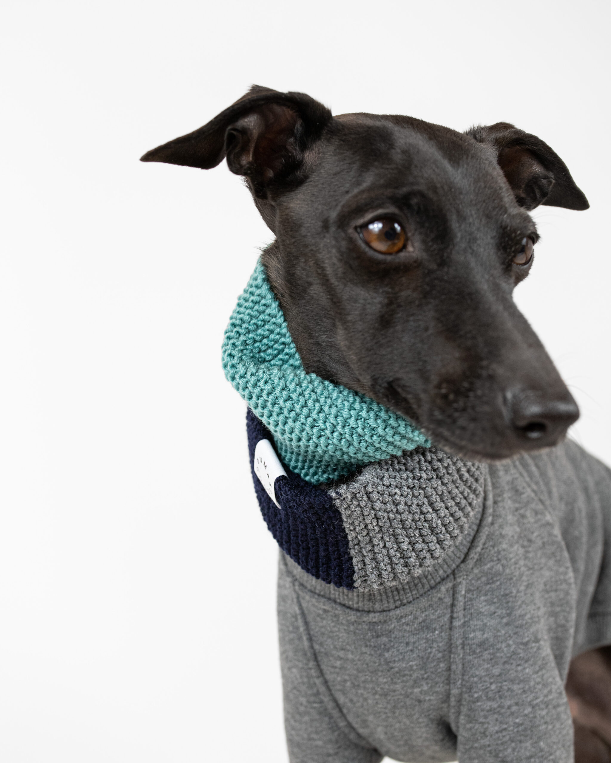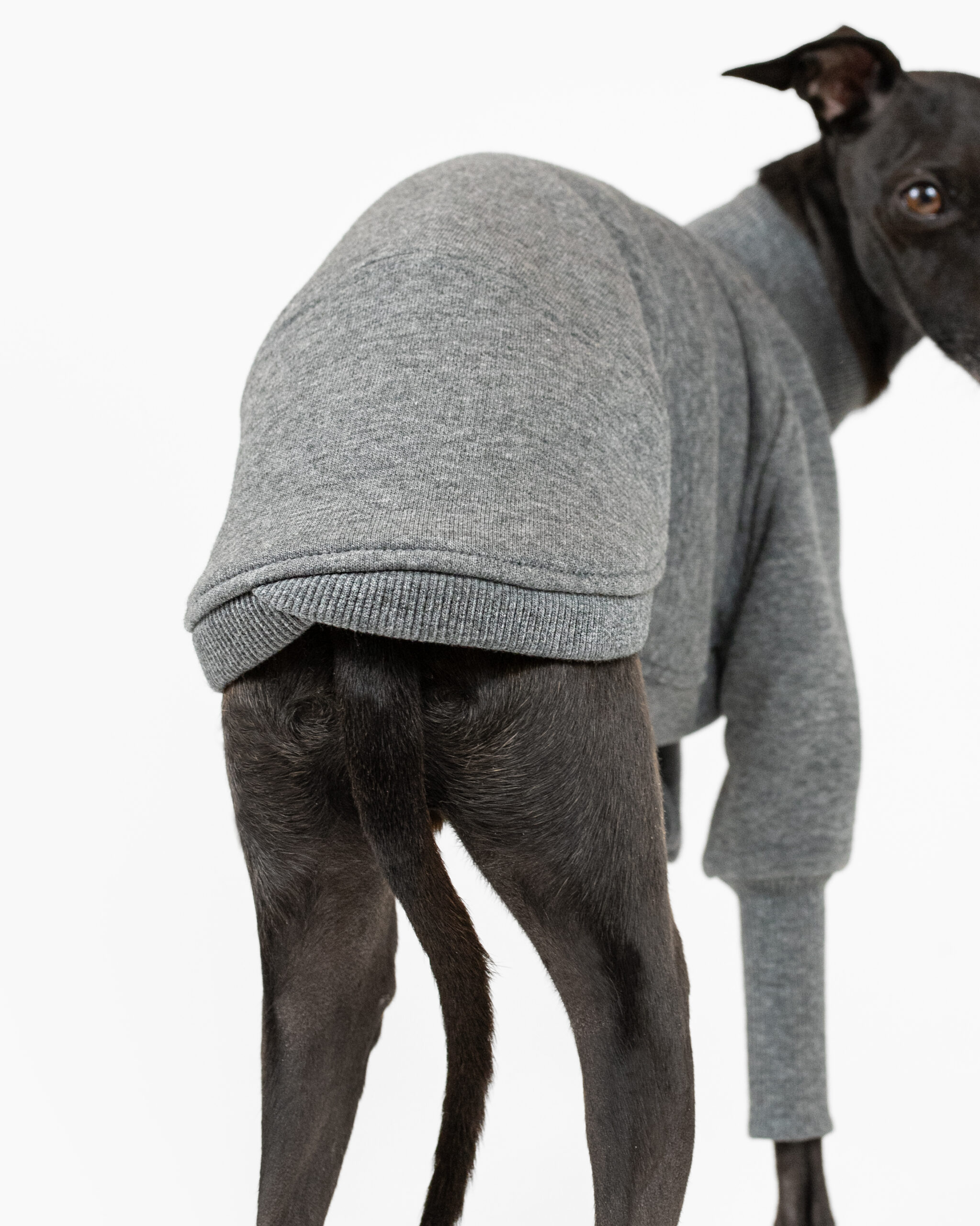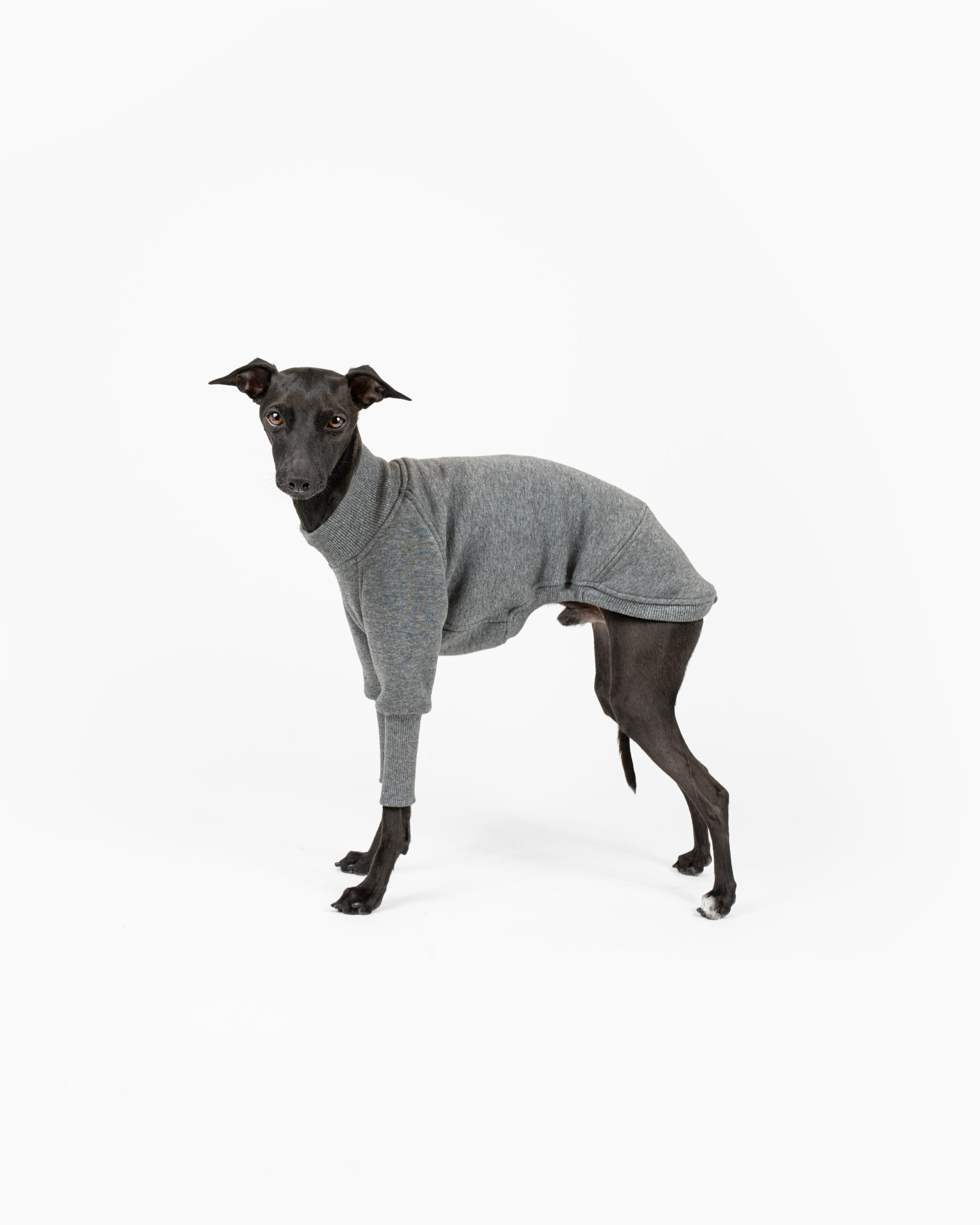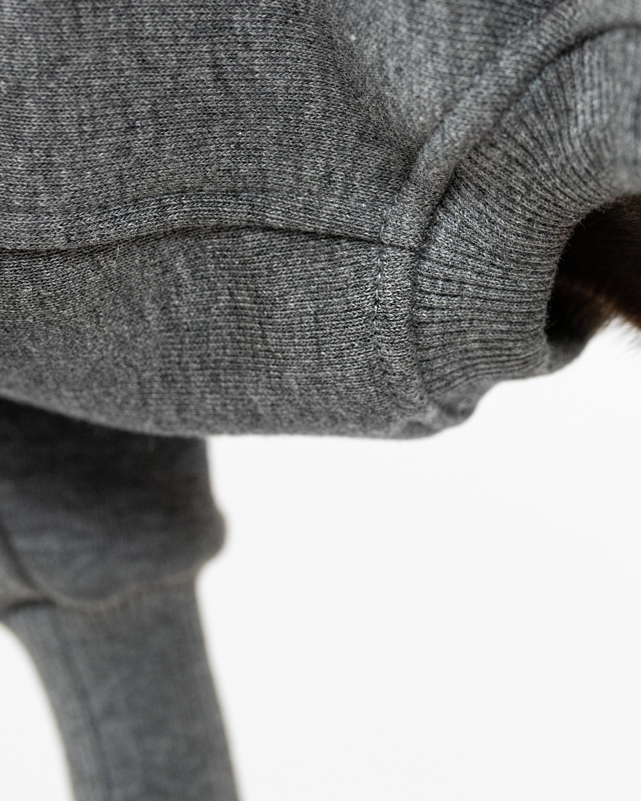 The Soft Core Jumper meets parameters such as appropriate length, no issue in dressing up the dog. The blazer also has some other small and cute details such as slim fit sleeves. The sleeves emphasizes the elegance of greyhound’s legs. The back part of the clothing covers all the body nicely from neck to tail. Most importantly – that does not restrict movements when playing, running or walking. The neck area is tailored short in heigh, so You can simply combine a collar or any other accessorie on top. The blazer can be worn during all seasons – combined with other clothing or simply by itself.